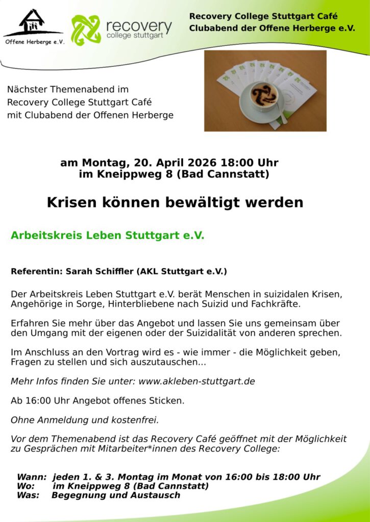 Liebe Interessierte am Recovery College Stuttgart,